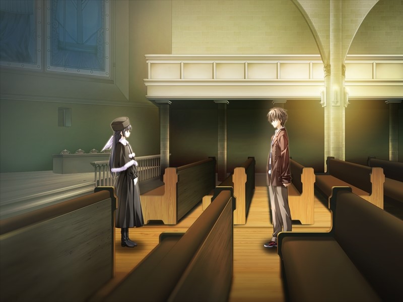 Amamiya Yuuko, a mysterious girl dressed like a nun, and Himura Yuu, a mysterious gentleman who is somehow attached to the church where Yuuko first appears,