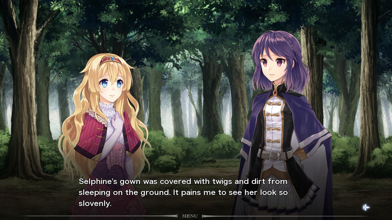 Launched as a throwback to the Science Fiction genre in the 80's, fault - milestone one is a Science Fantasy Kinetic Novel which depicts the story of a princess named Selphine and her Royal Guard Ritona. While attempting to make an escape from a brutal assault that's devastated their homeland of Rughzenhaide, the two mysteriously teleport to an unknown forest surrounded by vegetation not native to the surroundings of Rughzenhaide. The atmosphere is thick and heavy and no sign of life can be found, which is particularly unusual for such a lush forest. Sign of life isn't the only thing missing though. Something is odd about this land - something is amiss - but Selphine and Ritona are too startled to notice the obvious.