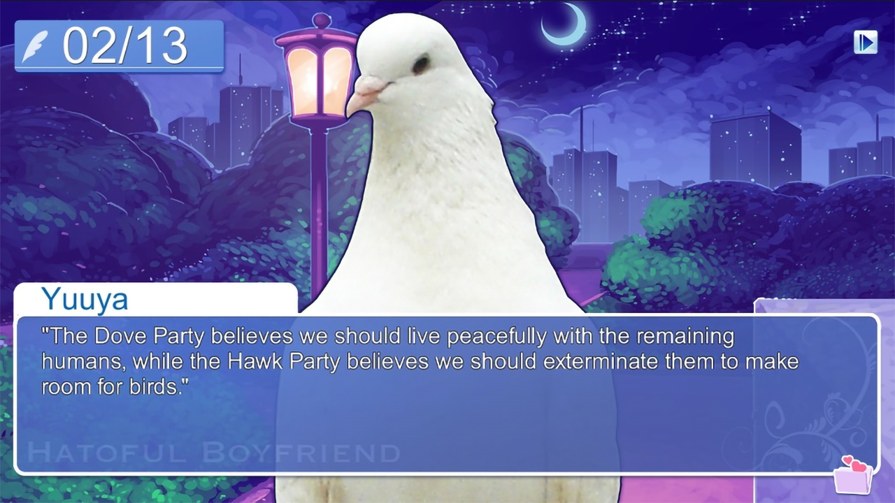 "Hatoful Boyfriend has a strange premise, and though it embraces that weirdness fully, it is able to surpass the label of silly dating sim by presenting interesting themes and characters through strong writing."