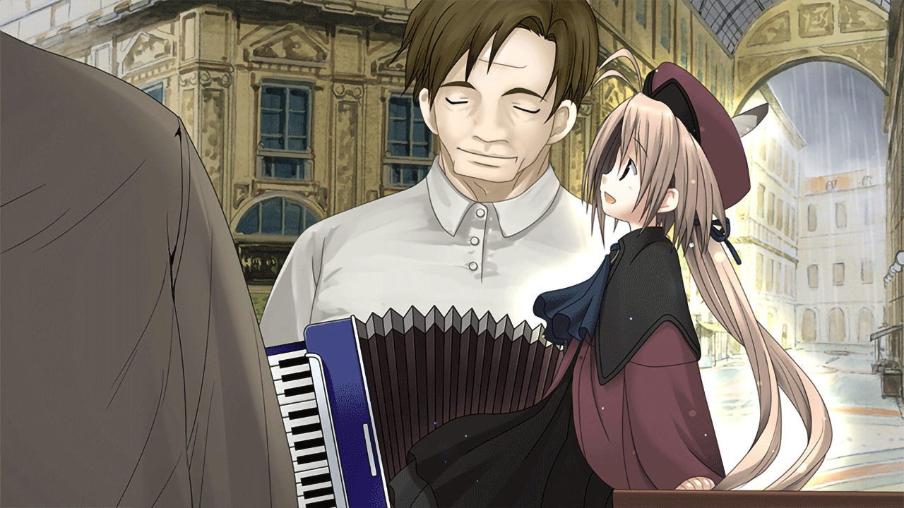 Symphonic Rain takes place in a fictional city of apparently Italian heritage, where rain falls everyday. The locals there have adapted to this peculiar phenomenon, and carry on with their lives as if the rain was never there. No one takes an umbrella, no one wears a rain coat.